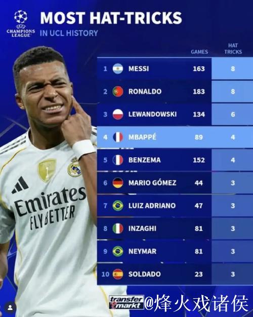 查看更多在本赛季欧冠小组赛战火重燃之际,一项关于欧冠改制以来“戴帽”次数的统计,再次把梅西和C罗这对“绝代双骄”推到了话题中心。数据显示,在欧冠改制后的进球狂潮中,梅西与C罗以各自8次上演帽子戏法的惊人表现,